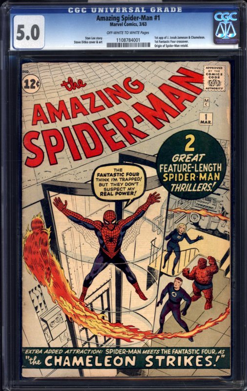 Fantastic Four in their first crossover to bring in new readers.) This first issue has since remained a cornerstone of comic collecting — with co-creators Stan Lee and Steve Ditko bringing in the first appearance of J. Jonah Jameson as one of the most iconic supporting characters in the history of comics. Fans also meet JJJ's astronaut son John, along with seeing The Chameleon's debut as Spidey’s first supervillain.