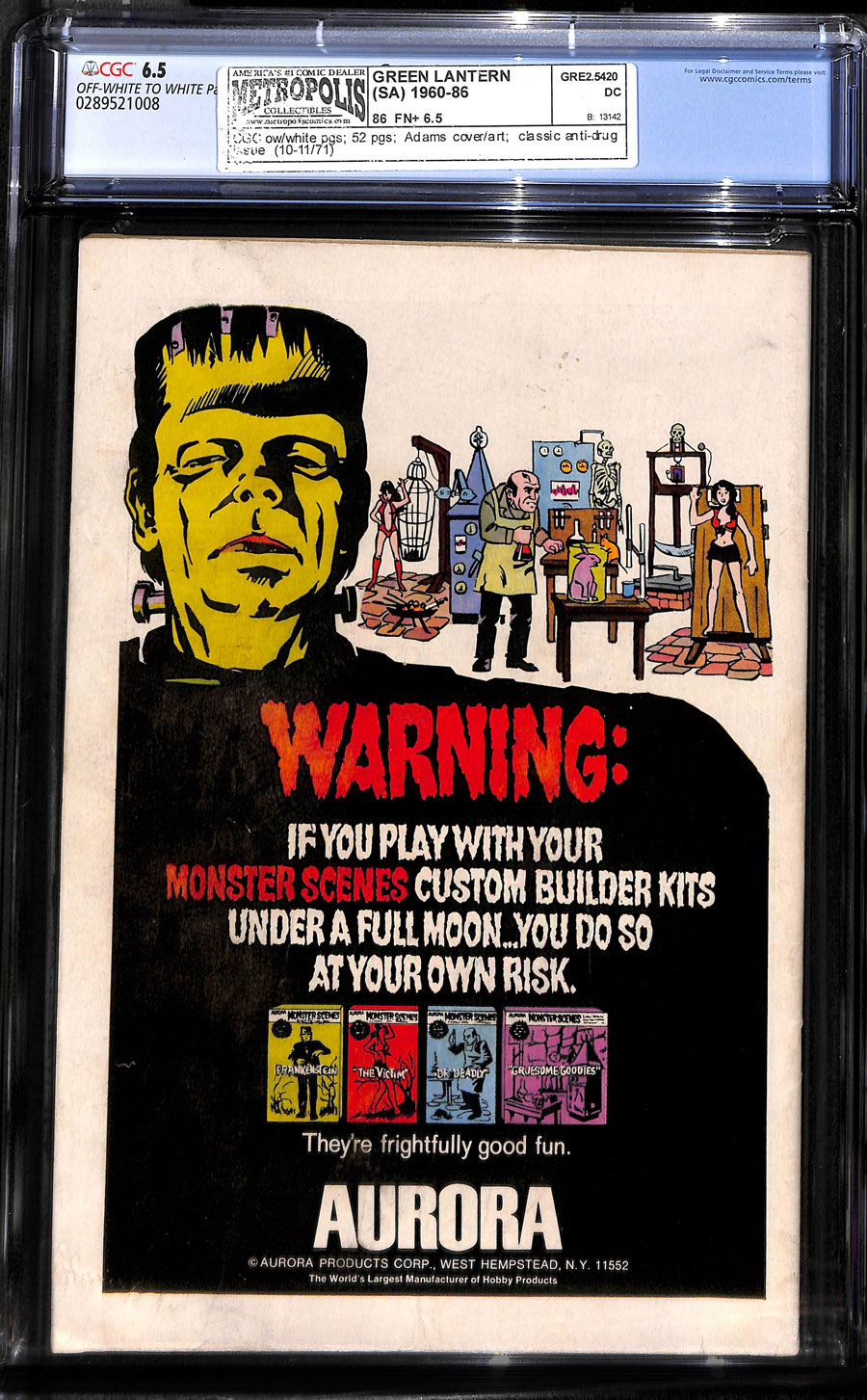 Neal Adams cover/pencils; Dick Giordano inks; classic story ft. Green Arrow's sidekick, Speedy's heroin addiction; COMIC BOOK IMPACT rating of 7 (CBI)Continuing the legendary and boundary breaking storyline from Green Lantern #85, this issue delves deeper into the damage and corruption underpinning the heroin trade. After revealing his drug addiction in the previous issue, Speedy proclaims he will quit, cold turkey, to spite Green Arrow for rejecting and beating him, and he goes to Dinah Lance’s home to dry out. Meanwhile, GL/GA are in hot pursuit of Speedy’s junkie “friends,” and once they catch up to them, they discover one has died of an overdose, a sequence which inspired the memorable Neal Adams cover design. The pair of heroes eventually track down the pusher behind the influx of heroin, trace him to his Caribbean island hideout and dispatch him and his lab technician. The story ends with a somber funeral and a heartfelt conversation between the newly clean Speedy and his father figure, Green Arrow. This comic, along with the previous issue are considered classics of the Bronze Age, that helped push the envelope and redefine what comic books were all about, both issues remain desired collectibles and continue to make a strong showing in the auction marketplace.