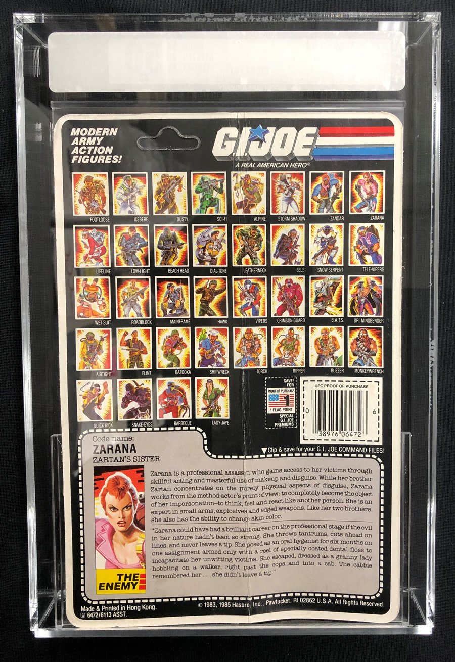 COMMENTS: Zarana; AFA 50 VG; 1986 Hasbro; Series 5; 36 Back; Card: 50; Blister: 80; Figure: 85