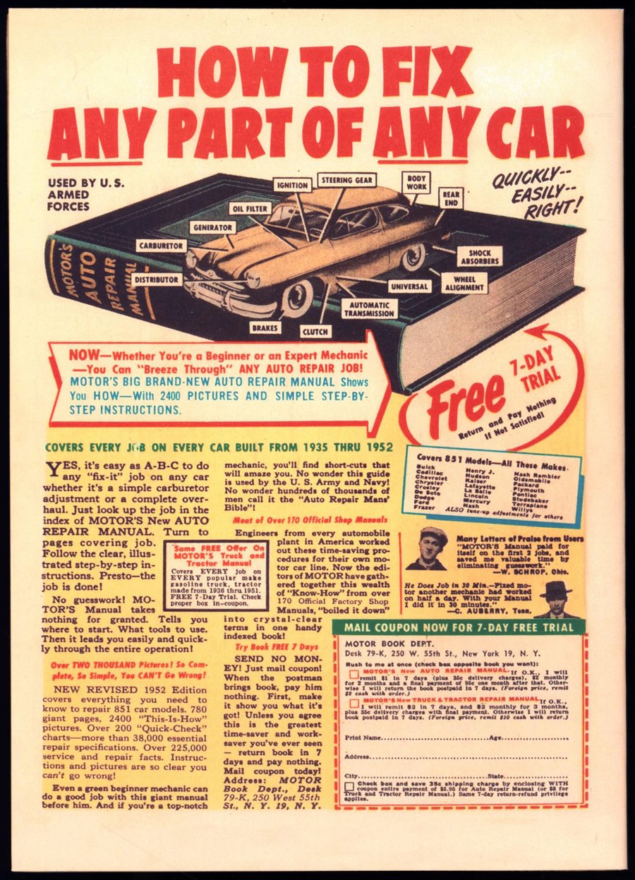 The argument can be made -- and has been made very well -- that American comedy of the past five decades owes its existence and style largely to this unassuming little raised-middle-finger of a comic, William Gaines' brutal, brilliant, brave broadside directed squarely at the heart of post-war American culture. It was a nearly instant smash hit, inspiring dozens of often dreadful imitators, and eventually morphed into a black and white magazine that became even more influential and world-famous throughout the 1960s and 1970s, but it was this full-color blast of sick humor that was a nuclear explosion going off in the minds of impressionable young readers and hip comedy mavens. One of the rare instances in which a series' style and tone was dead-on from the very first page, this outlandish first issue allowed Gaines and Kurtzman's small army of incredible talents to unleash the pent-up frustrations and residual traumas felt by the generation that grew up in the grinding poverty of the depression and survived the unspeakable horrors of WWII. The result influenced everyone from Lenny Bruce to George Carlin to Ernie Kovacs to the Smothers Brothers, and beyond. It's hard to overstate the importance of this first issue, and the 22 comic issues following, to American popular culture, so we'll just stop trying now.