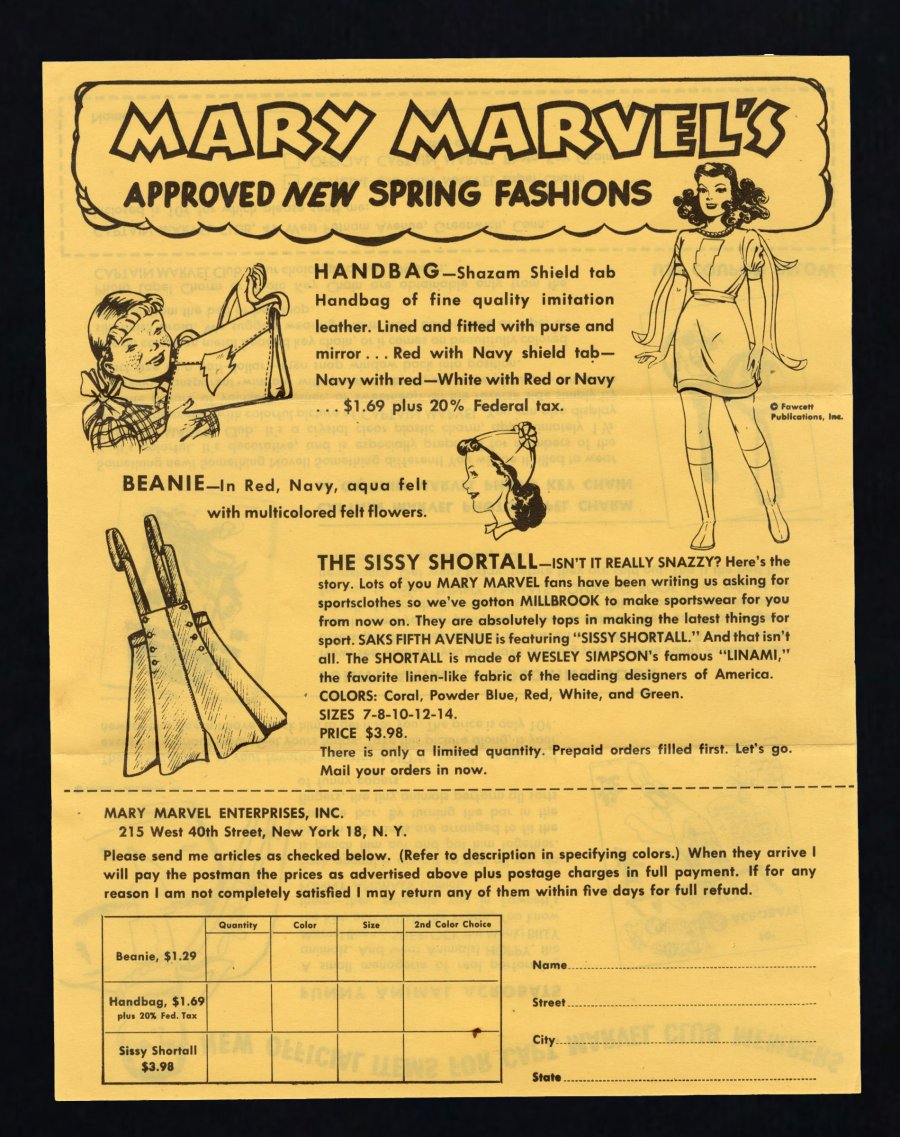 COMMENTS: rare double sided order form for club members from 1945. One side is devoted to Mary Marvel
