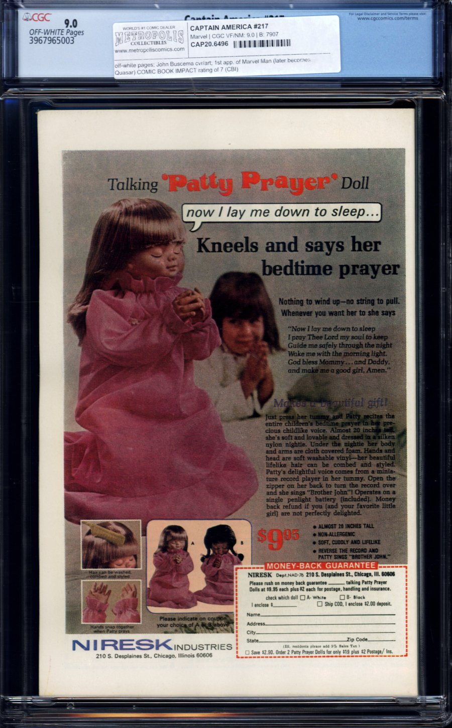 1st app. of Marvel Man (later becomes Quasar) COMIC BOOK IMPACT rating of 7 (CBI)Cover pencils by John Buscema, inks by Frank Giacoia. First appearance of Quasar, aka Marvel Man (called Marvel Boy in this issue) in "The Search for Steve Rogers!", script by Roy Thomas (plot) and Don Glut (script), pencils by John Buscema, inks by Pablo Marcos; Nick Fury wants Captain America to lead his team of new S.H.I.E.L.D Super agents; At Cap's suggestion, the Falcon agrees to lead and train the young agents.