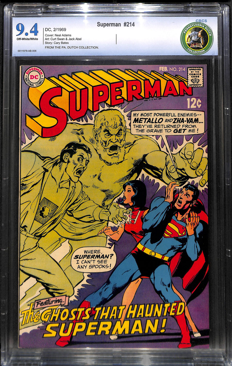 Pennsylvania Dutch CopyCover art by Neal Adams. The GhostsThat Haunted Superman! starring Nador (villain, as Metallo, as Composite-Superman. as Zha-Vam), script by Cary Bates, pencils by Curt Swan, inks by Jack Abel. How Perry White Hired Clark Kent!, script by Jerry Siegel, art by Al Plastino; In a flashback story, though Perry White tries to brush him off, Clark proves that he has what it takes to be a reporter at the Daily Planet.