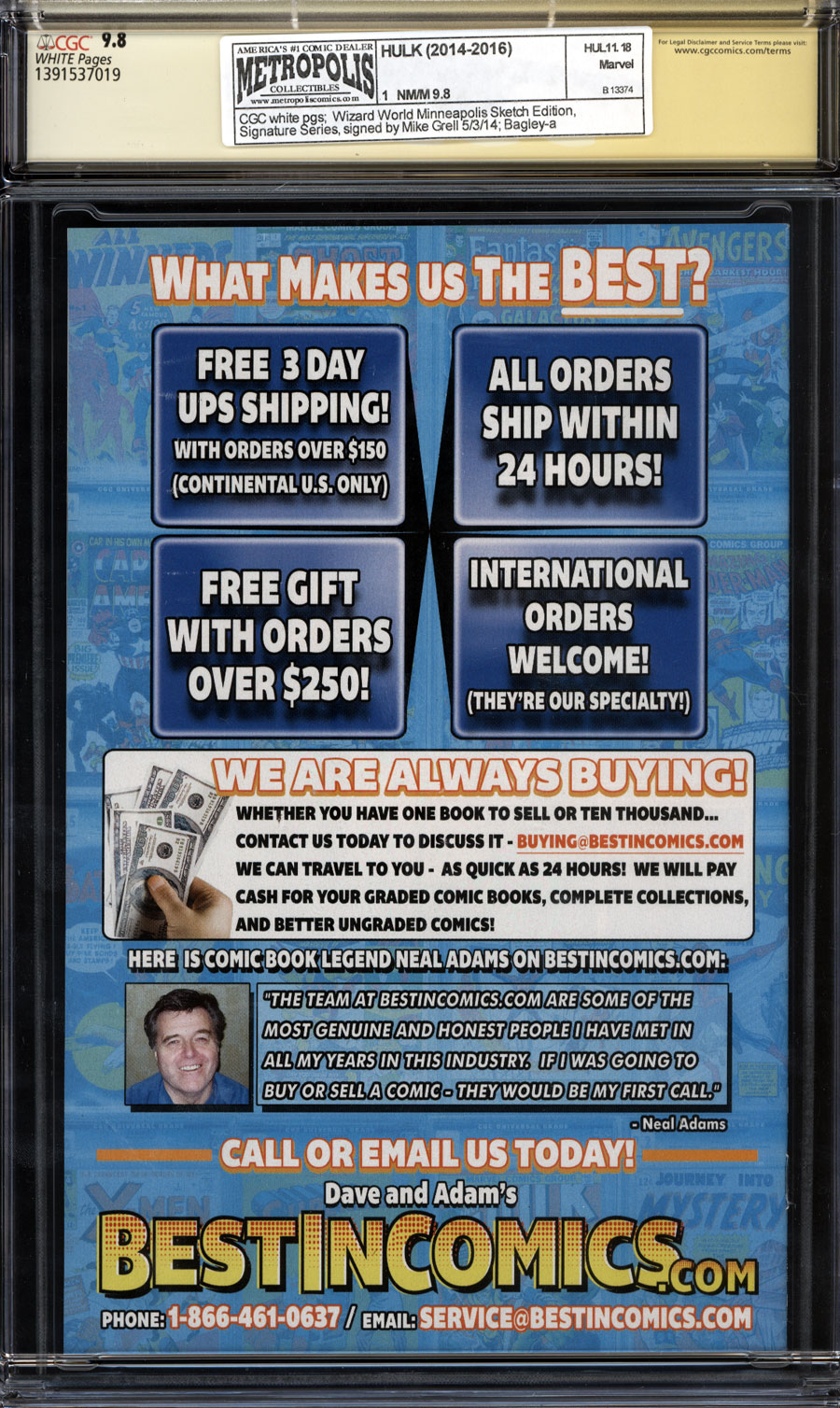 white pgs;  Wizard World Minneapolis Sketch Edition, Signature Series, signed by Mike Grell 5/3/14