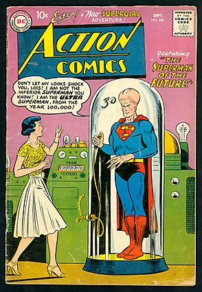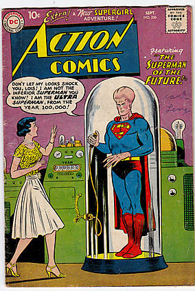 swelled-head Superman of the future cover; COMIC BOOK IMPACT rating of 6 (CBI)