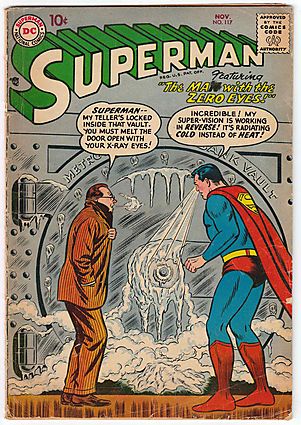 Clark Kent, Man of Mystery; COMIC BOOK IMPACT rating of 5 (CBI)Cover pencils by Curt Swan, inks by Stan Kaye. Clark Kent, Man of Mystery starring Superman, script by Otto Binder, pencils by Wayne Boring, inks by Stan Kaye. The Secret of Fort Superman starring Superman and Lex Luthor, script by Otto Binder, pencils by Wayne Boring, inks by Stan Kaye. The Man With the Zero Eyes starring Superman and Rex Chalmers, art by Al Plastino; Superman's heat vision (called super-vision here) is cold instead of hot.