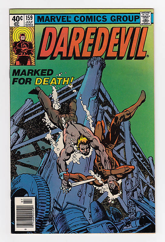 2nd Miller cover/art; Bullseye app; underwater cover; COMIC BOOK IMPACT rating of 6 (CBI)secrets of Daredevil's billy club last page