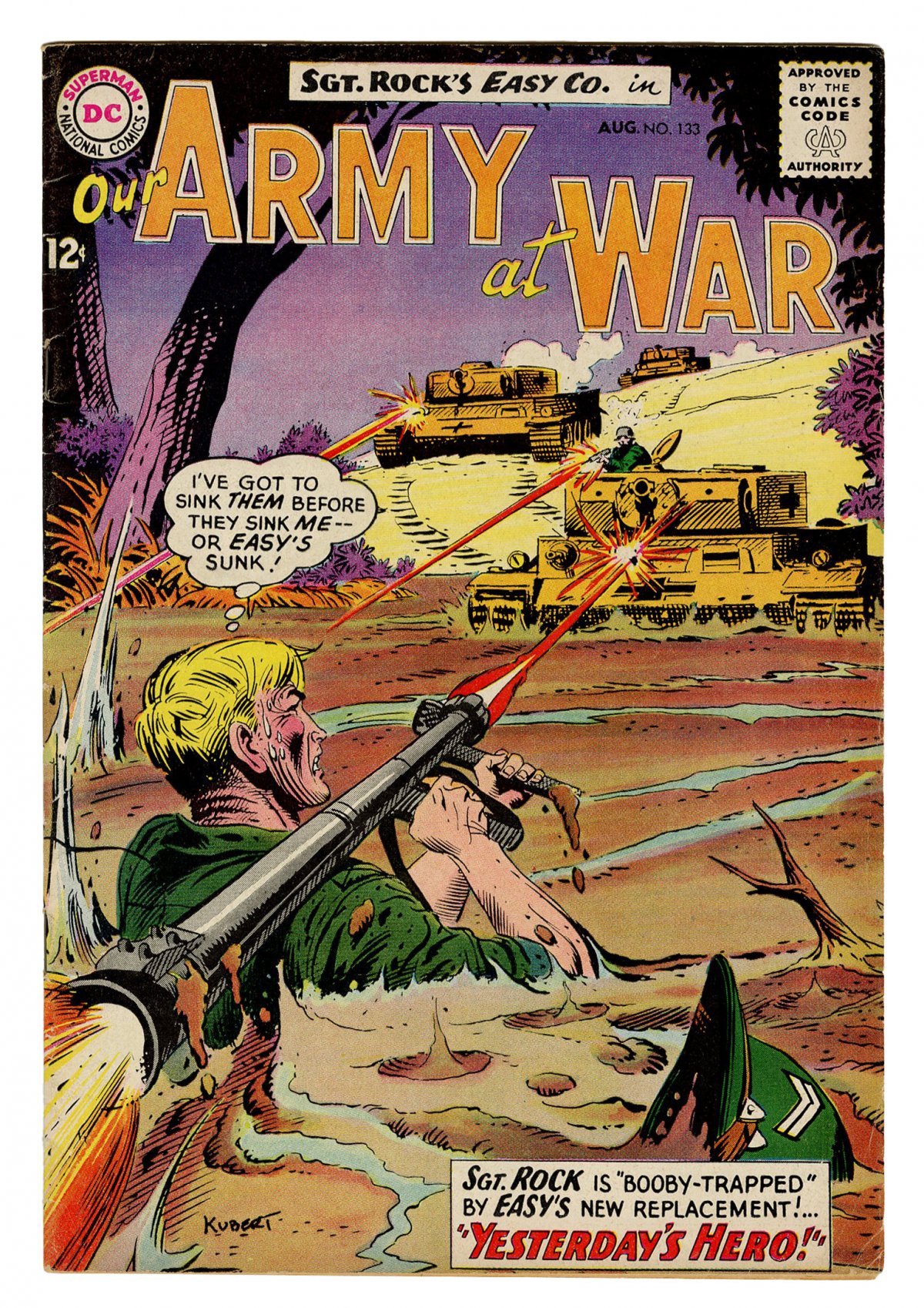 Kubert c/a; COMIC BOOK IMPACT rating of 6 (CBI)Cover art by Joe Kubert. Yesterday's Hero starring Sgt. Rock, script by Bob Kanigher, art by Joe Kubert. Candy Spad, script by Hank Chapman, art by Jerry Grandenetti.