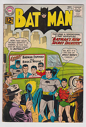 Batwoman story; COMIC BOOK IMPACT rating of 6 (CBI)Cover pencils by Sheldon Moldoff, inks by Charles Paris. "Batman's New Secret Identity!", script by Bill Finger, pencils by Bob Kane, inks by Charles Paris; The Caped Crusaders' secret identities are compromised, forcing them to adopt entirely new identities in order to continue their war on crime. Strange Laws humor/non-fiction page by Henry Boltinoff. One-page Professor Eureka story by Henry Boltinoff. "The Mystery Gadget from the Stars!", script by Jerry Coleman, pencils by Sheldon Moldoff, inks by Charles Paris; A weird alien device is discovered, whose rays causes objects to evolve; The Caped Crusaders must battle a criminal gang into whose hands the device has fallen.
