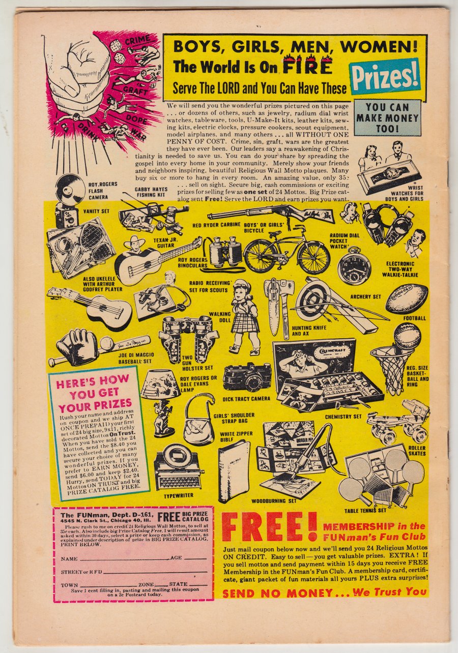 MAD was known for their clever novelty covers, from this early example, designed to look like Reader’s Digest or some other milquetoast 50’s publication, the staff at MAD couldn’t contain their satire to the interior of the book for long. The early comedic cover illustrations quickly gave way to a variety of experimental covers, from copying the look of a school notebook to the infamous fold in back covers, responsible for many surviving issues being in lower grades, MAD was forever stretching the limitations of what could be done with comics, and later, magazines. But this is one of the earliest incidences of using the format of comics as a form of parody, lampooning the look of a “normal” periodical of the era. The trend would culminate with the inclusion of Alfred E. Neuman taking part in every cover for decades, appearing in everything from 60s psychedelia to 80s sci-fi films. This book is another of the important early issues that signaled the staying power MAD would have once the book hit its stride. Targets in this issue include Archie, 3-D comics, “From Here to Eternity,” and much more.