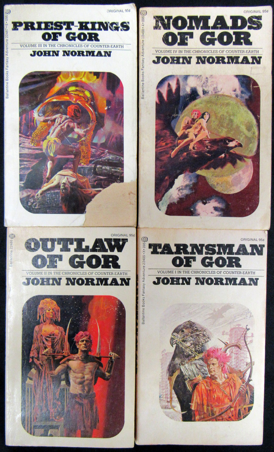 Check extended comments for titles, Avg Grade- 6.0 (Fine), Value= $75Lot includes Tribesmen of Gor, Tarnsman of Gor, Outlaw of Gor, Nomads of Gor, Priest-Kings of Gor all by John Norman, The Black Master (The Shadow) by Maxwell Grant, Dust of Far Suns by Jack Vance and 6XH by Robert Heinlein