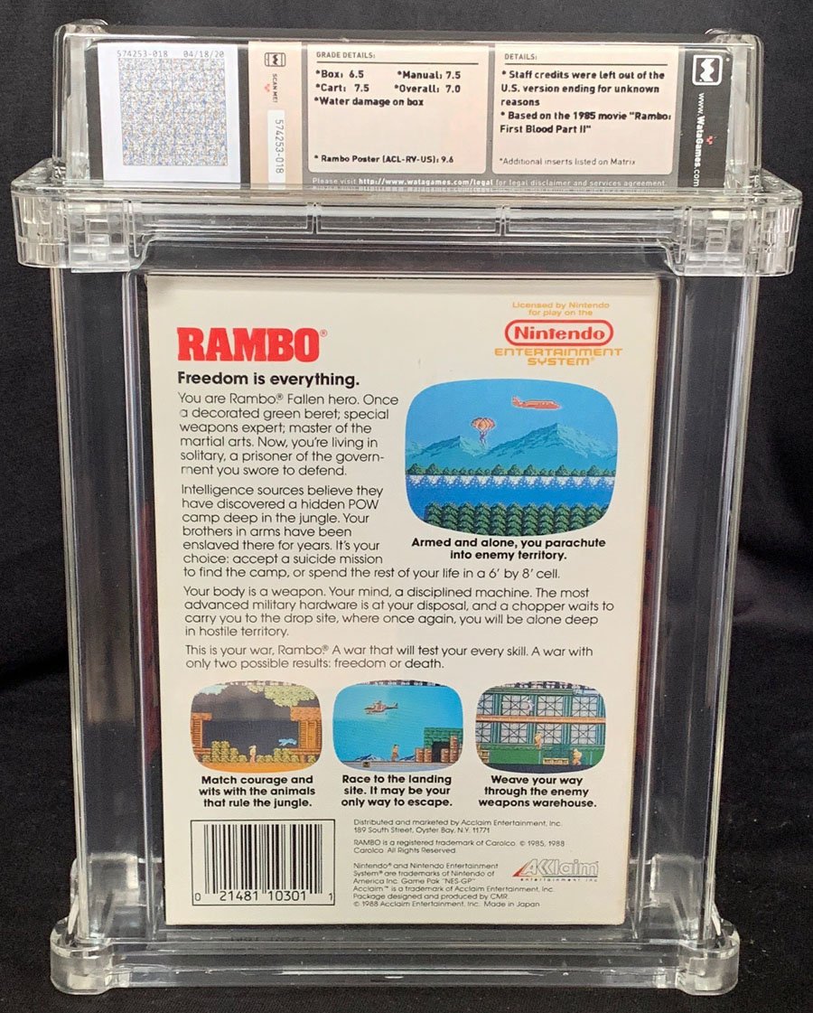 CIB: Box: 6.5; Cart: 7.5; Manual: 7.5; Rambo Poster (ACL-RV-US): 9.6; See extended comments.