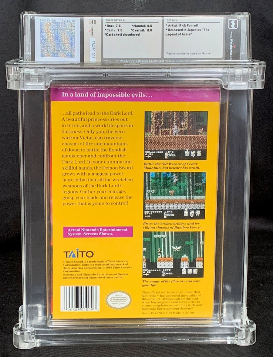 Artist: Rick Farrell; Released in Japan as "The Legend of Acala".In the land of impossible evils.....all paths lead to the Dark Lord. A beautiful princess cries out in terror, and a world despairs in darkness. Only you, the hero warrior Victar, can traverse chasms of fire and mountains of doom to battle the fiendish gatekeeper and confront the Dark Lord. In your cunning and skillful hands, the Demon Sword grows with a magical power more lethal than all the wretched weapons of the Dark Lord's legions. Gather your courage , grasp your blade and release the power that is yours to control!Rev-A; Oval SOQ TM - Box
