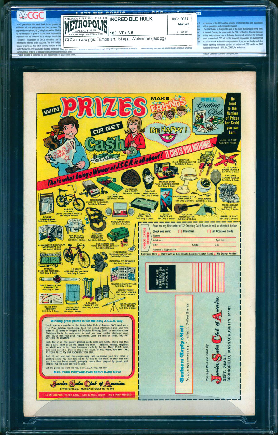 1st appearance of Wolverine (last page cameo); Wendigo app., Herb Trimpe cover & art; COMIC BOOK IMPACT rating of 9 (CBI)