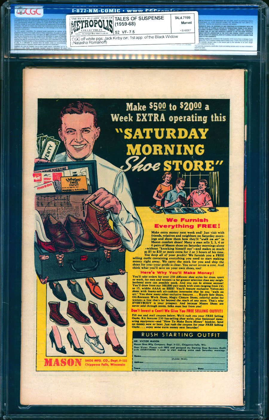 Jack Kirby cover; 1st app of the Black Widow (Natasha Romanoff); 1st appearance of 2nd Crimson Dynamo (and death); Death of the first Crimson Dynamo (Anton Vanko); COMIC BOOK IMPACT rating of 8 (CBI)