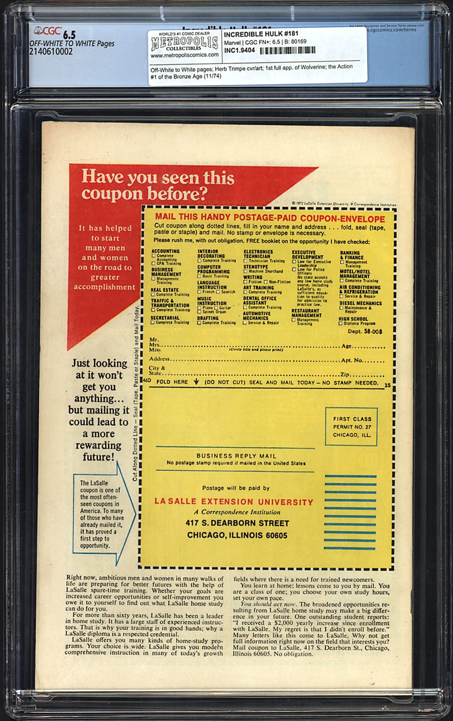 Incredible Hulk #181 became the first Bronze Age book to break the $100,000 sales mark.
