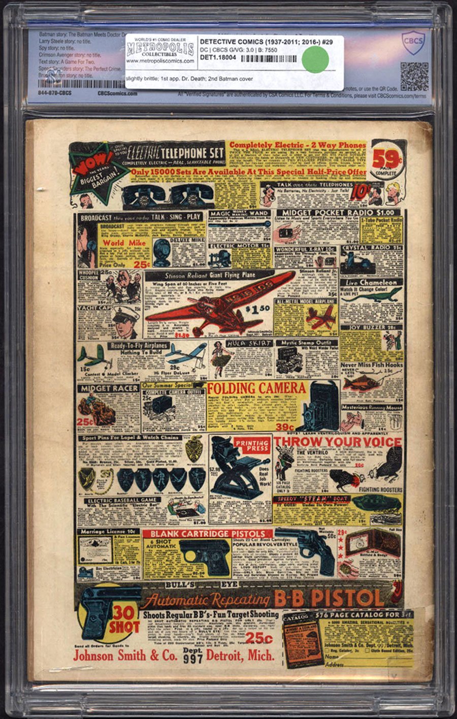 1st appearance of Dr. Death; 2nd Batman cover app; COMIC BOOK IMPACT rating of 8 (CBI)