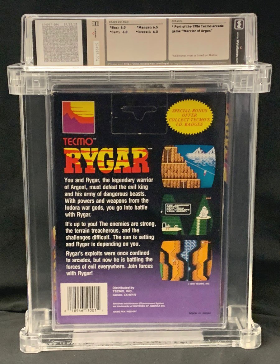 Rygar's exploits were once confined to arcades, but now he is battling the forces of evil everywhere. Join forces with Rygar! Box - Hangtab; No Rev-A; Round SOQ; "Made in Japan" Printed