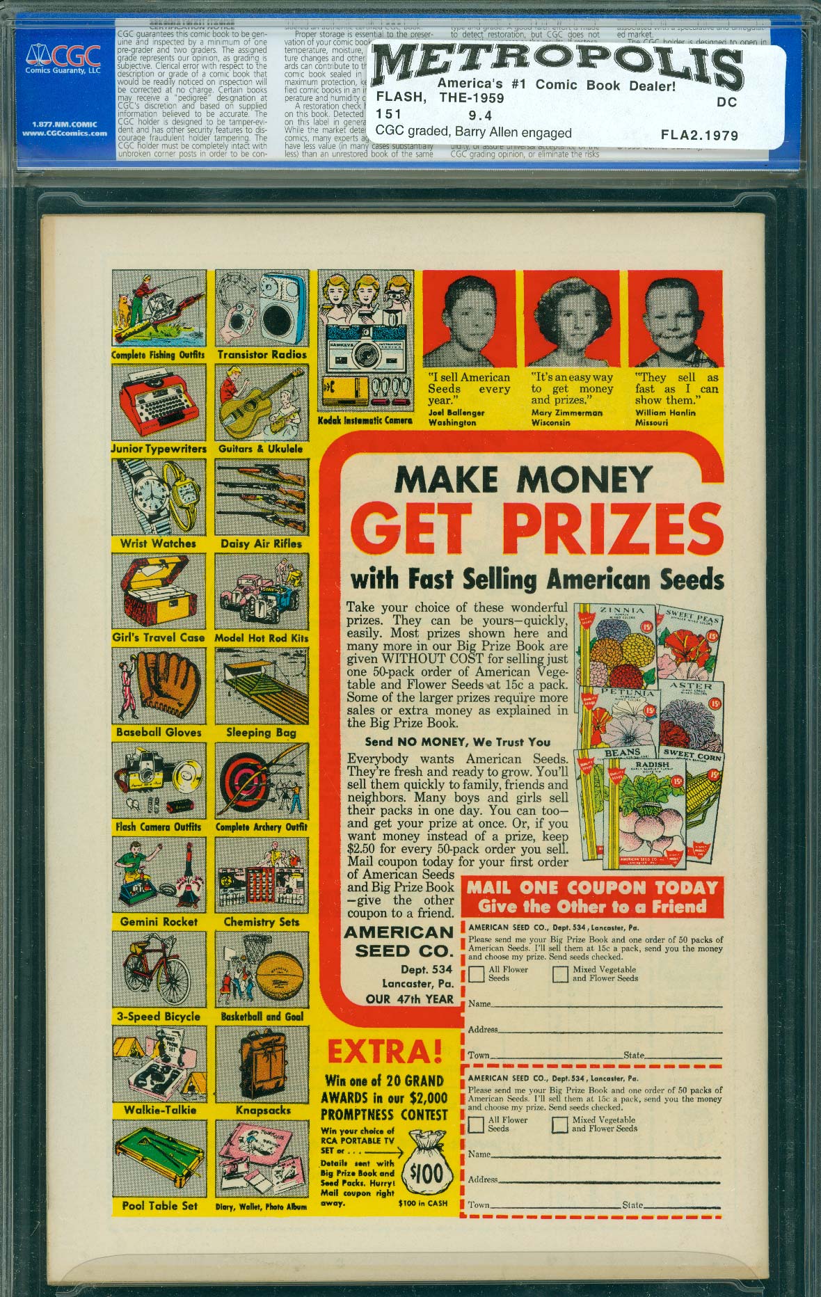 Infantino cover/art; Golden Age Flash cover; Shade app. (3/65) COMIC BOOK IMPACT rating of 6 (CBI)Cover pencils by Carmine Infantino, inks by Murphy Anderson. Invader From the Dark Dimension, script by Gardner Fox, pencils by Carmine Infantino, inks by Joe Giella; Barry "Flash" Allen and Jay Garrick (the Flash of Earth 2) battle The Shade. GI Joe toy ad. 80 pg. Giant More Secret Origins ad. Astroforce Space Soldiers toy ad. What's the Difference Between Dumb and Mute public service announcement, script by Julius Schwartz, pencils by Morris Waldinger, inks by Tom Nicolosi. Ed Big Daddy Roth custom finishes ad. Letter from noted letter hack Guy H. Lillian III. Flash subscription ad.