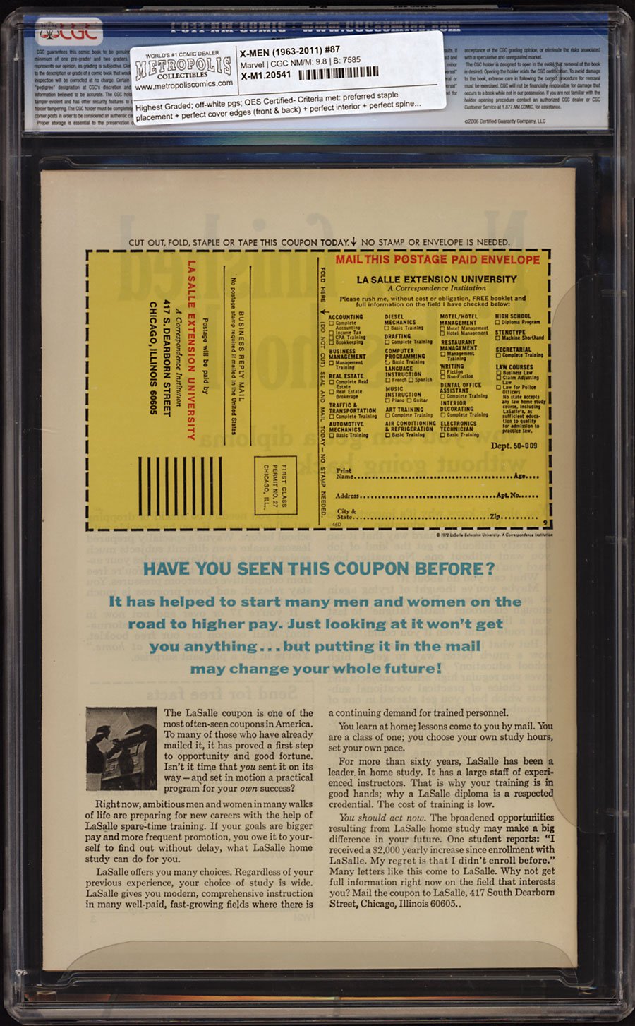 COMMENTS: off-white pgs; QES Certified- Criteria met: preferred staple placement + perfect cover edges (front & back) + perfect interior + perfect spine