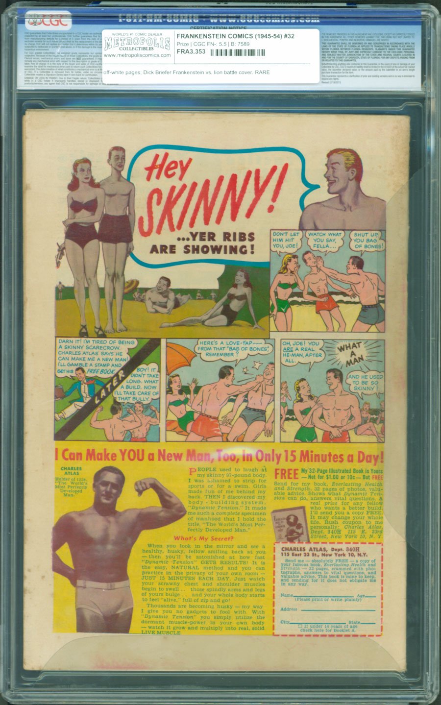 Dick Briefer Frankenstein vs. lion battle cover. RARE; COMIC BOOK IMPACT rating of 6 (CBI)