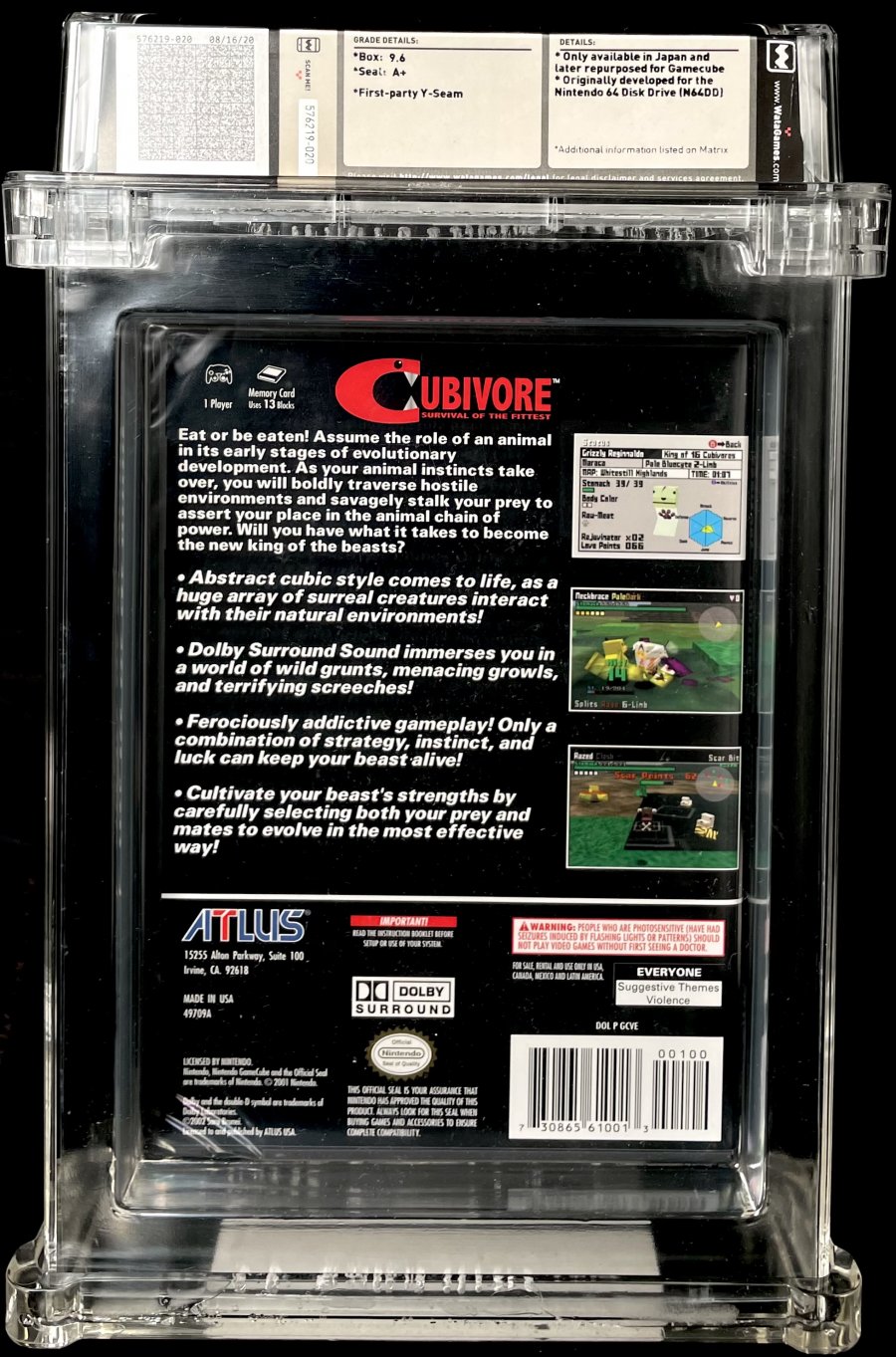 Only available in Japan and later repurposed for Gamecube; Originally developed for the Nintendo 64 Disk Drive(N64DD)Eat or be eaten! Assume the role of an animal in its early stages of evolutionary development. As you animal instincts take over, you will boldly traverse hostile environments and savagely stalk you prey to assert your place in the animal chain of power. Will you have what it takes to become the new king of the beats?