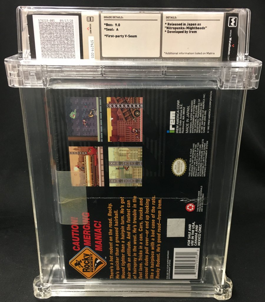 Released in Japan as "Nitropunks: Mightheads"; Developed by IremCaution merging maniac! There's a hot rodent on the road. Rocky. He's quicker than a greased hairball. Wound tighter that a hairpin turn. He's got hair with an attitude. And the fastest can of hairspray in the west. He's trouble in the fast lane. Tricks in a can. Cars, trucks and uncool dudes pull over - or end up looking like a hairpiece with a bad case of the rats. Rocky Rodent. He's good road - from Irem.