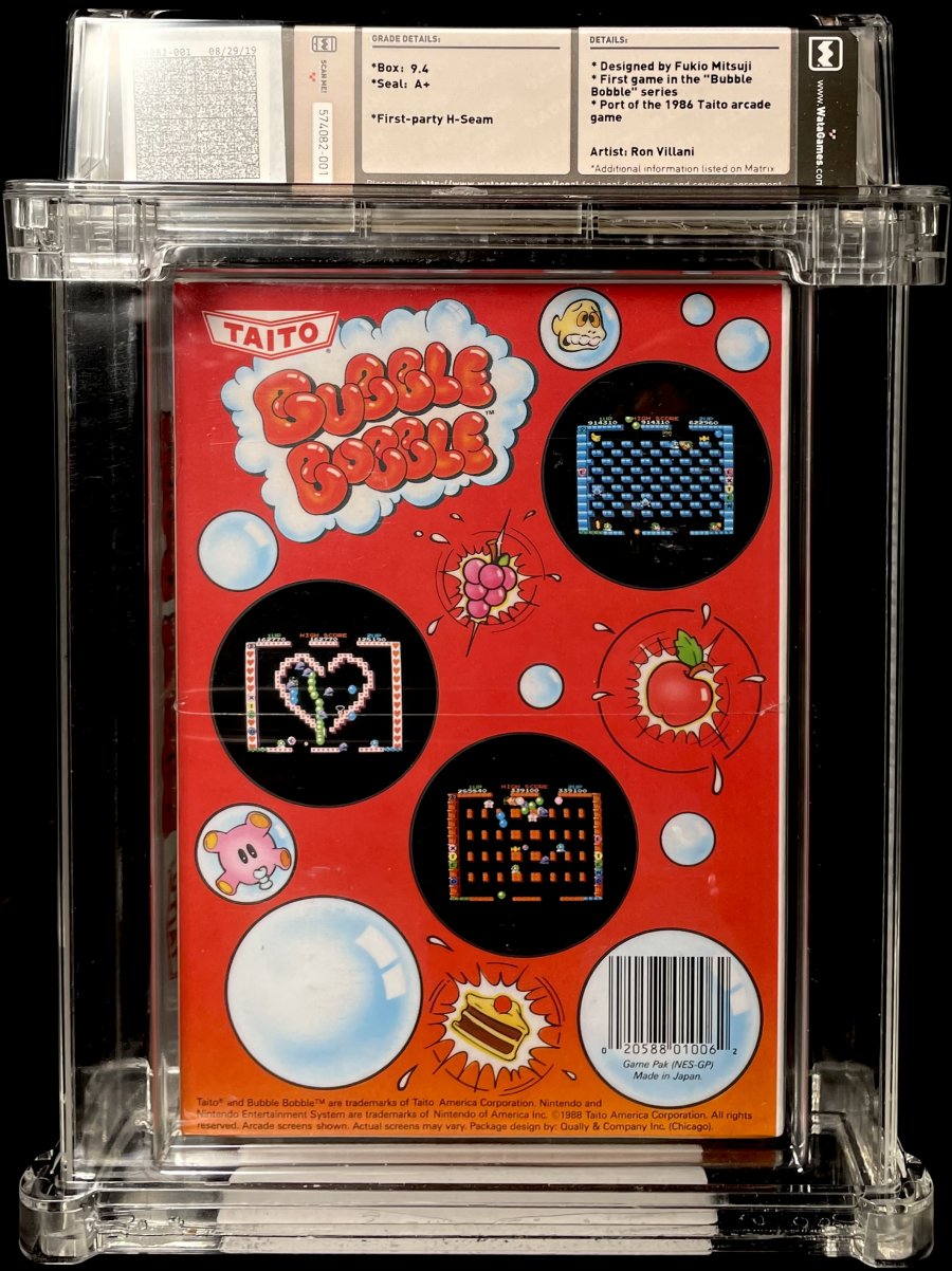Designed by Fukio Mitsuji; First game in the "Bubble Bobble" series; Port of the 1986 Taito acrade game; Artist: Ron Villani.