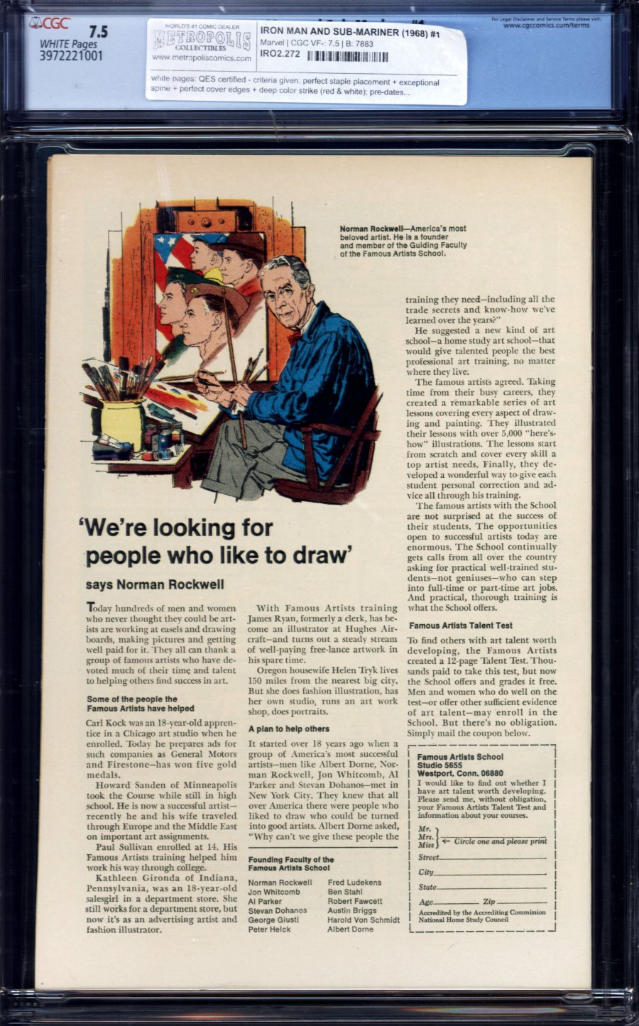 The cover boasts an action packed team-up between the titular heroes that never happens—so, you know, "don't judge a book by its cover." Instead this comic contains two separate stories continuing from Tales of Suspense and Tales to Astonish respectively; predating both Iron Man #1 and Sub-Mariner #1. With Iron Man's popularity peaking on the silver screen and Sub-Mariner's soon to come, this will undoubtedly be a highly sought-after issue for collectors and aficionados.