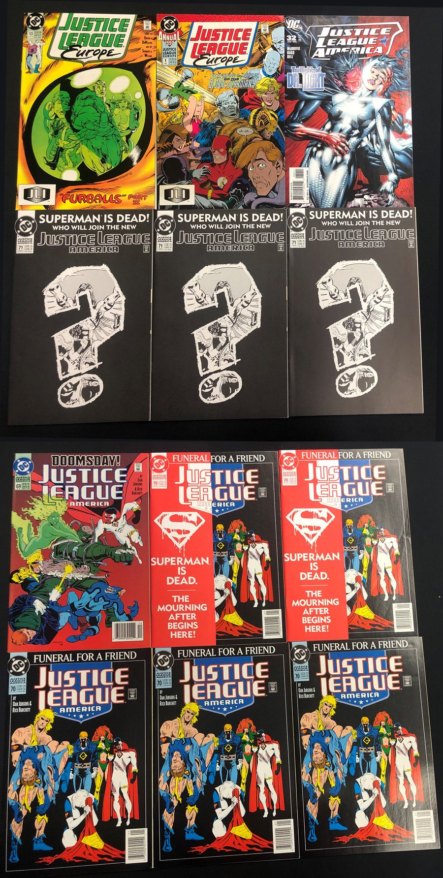 COMMENTS: Dealers Lot!! lot of 18 comics, issue #s 66, 69 (5 copies), 70 (5 copies), 71 (3 copies), 74, bonus Justice League Europe #13, Annual #1, JLA New 52 #32, grade range 9.2-9.8, estimated value $110