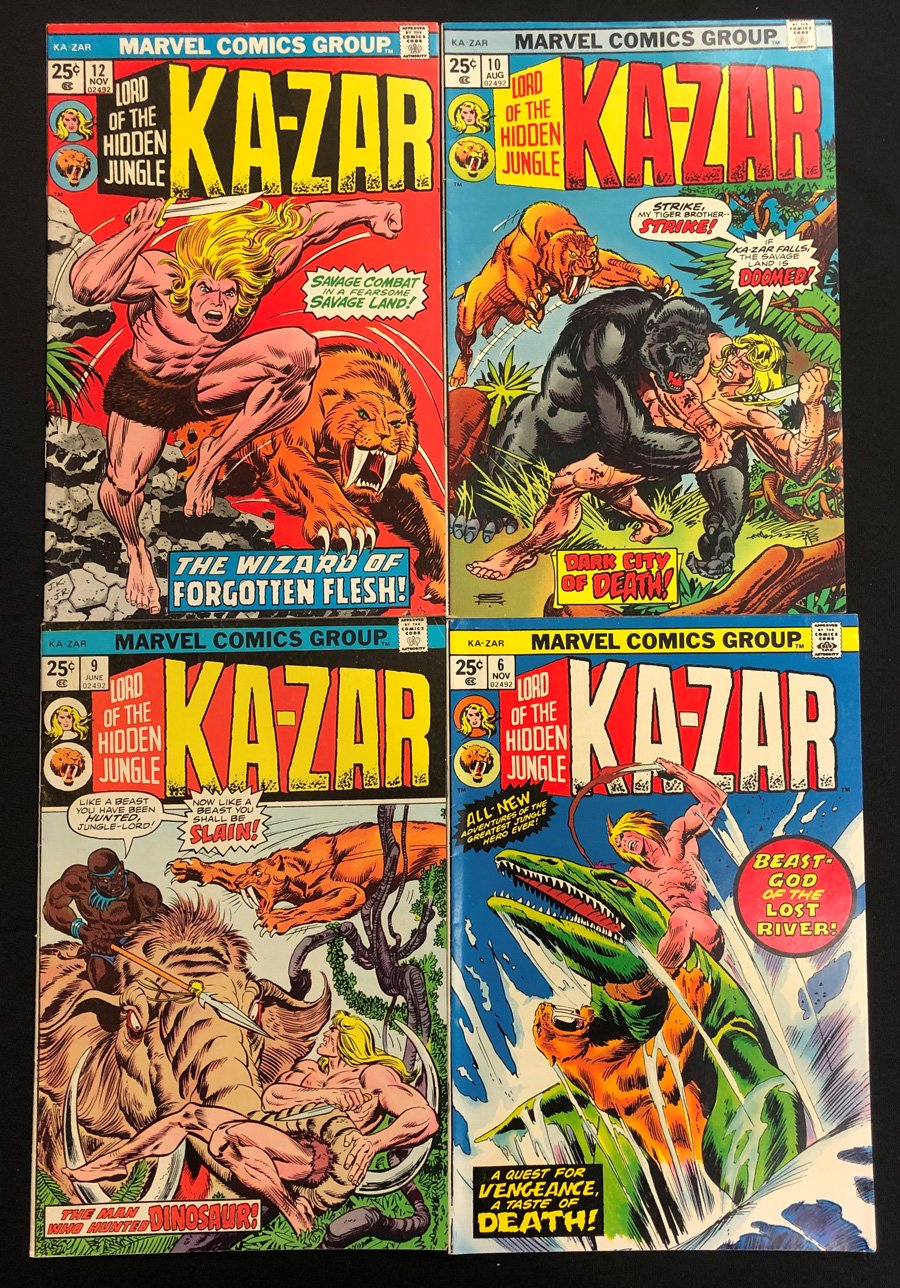 lot of 7 comics, issue #s 4, 6, 9, 10, 12 bonus Ka-Zar (1970) #1 (2 copies), grade range 5.5-8.5, estimated value $67