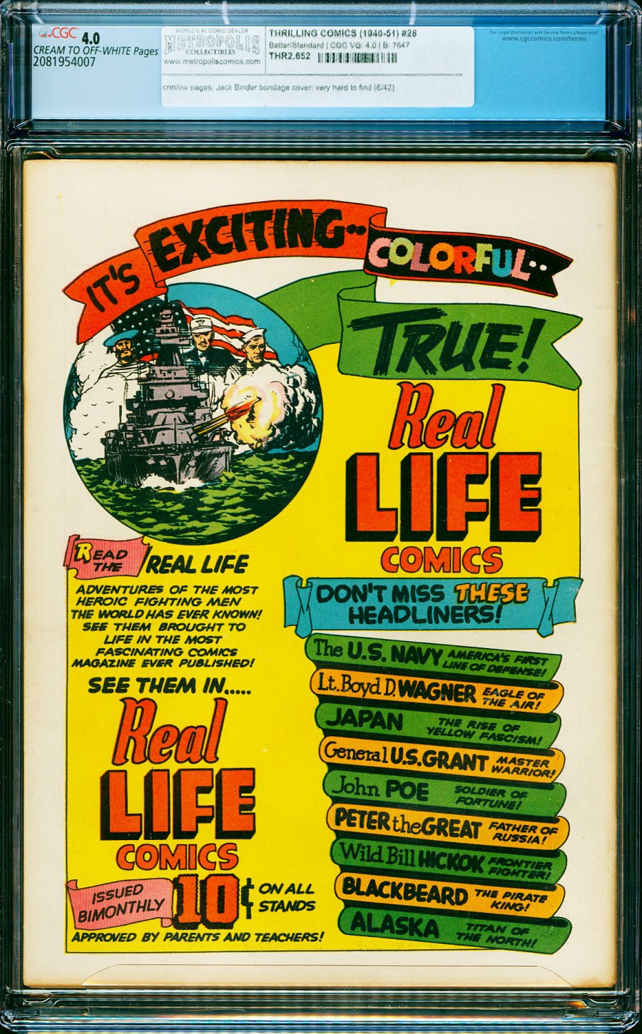 Jack Binder bondage cover; very hard to find (6/42)Cover by Jack Binder. Edited by Ned Pines. Stories by Jack Binder, Max Plaisted, Elmer Wexler, George Mandel, Charles S. Strong, Kin Platt, and John Daly. Chock full of action and adventure, these are Thrilling Comics!