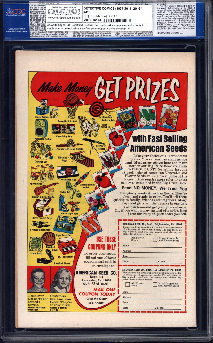Adams cover/art (4/71) COMIC BOOK IMPACT rating of 6 (CBI)Cover pencils by Neal Adams, inks by Dick Giordano. "A Vow from the Grave!," script by Denny O'Neil, pencils by Neal Adams, inks by Dick Giordano; Batman captures Kano Wiggins and also helps solve the murder of a circus side-show performer. "Battle of the Three M's," script by Frank Robbins, pencils by Don Heck, inks by Dick Giordano; When a popular fashion model Mamie Acheson is injured and has to select one of three models (Maxi, Midi or Midi) to act as her replacement while her leg heals, it causes quite a stir in the fashion world; Batgirl soon finds herself involved after a suspicious visit from a member of a fashion company to her library seeking to get certain books.