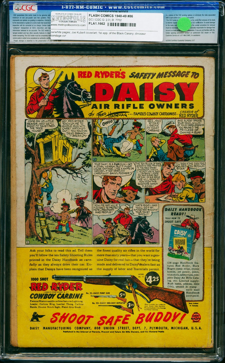 Joe Kubert cover/art; 1st app. of the Black Canary (Dinah Drake); dinosaur bondage cvr
