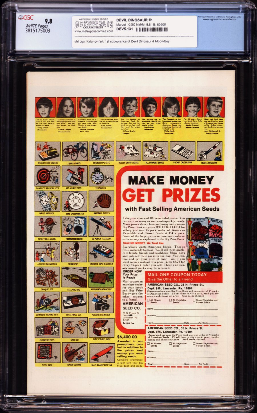 Kirby cover/art; 1st appearance of Devil Dinosaur & Moon-Boy; COMIC BOOK IMPACT rating of 7 (CBI)