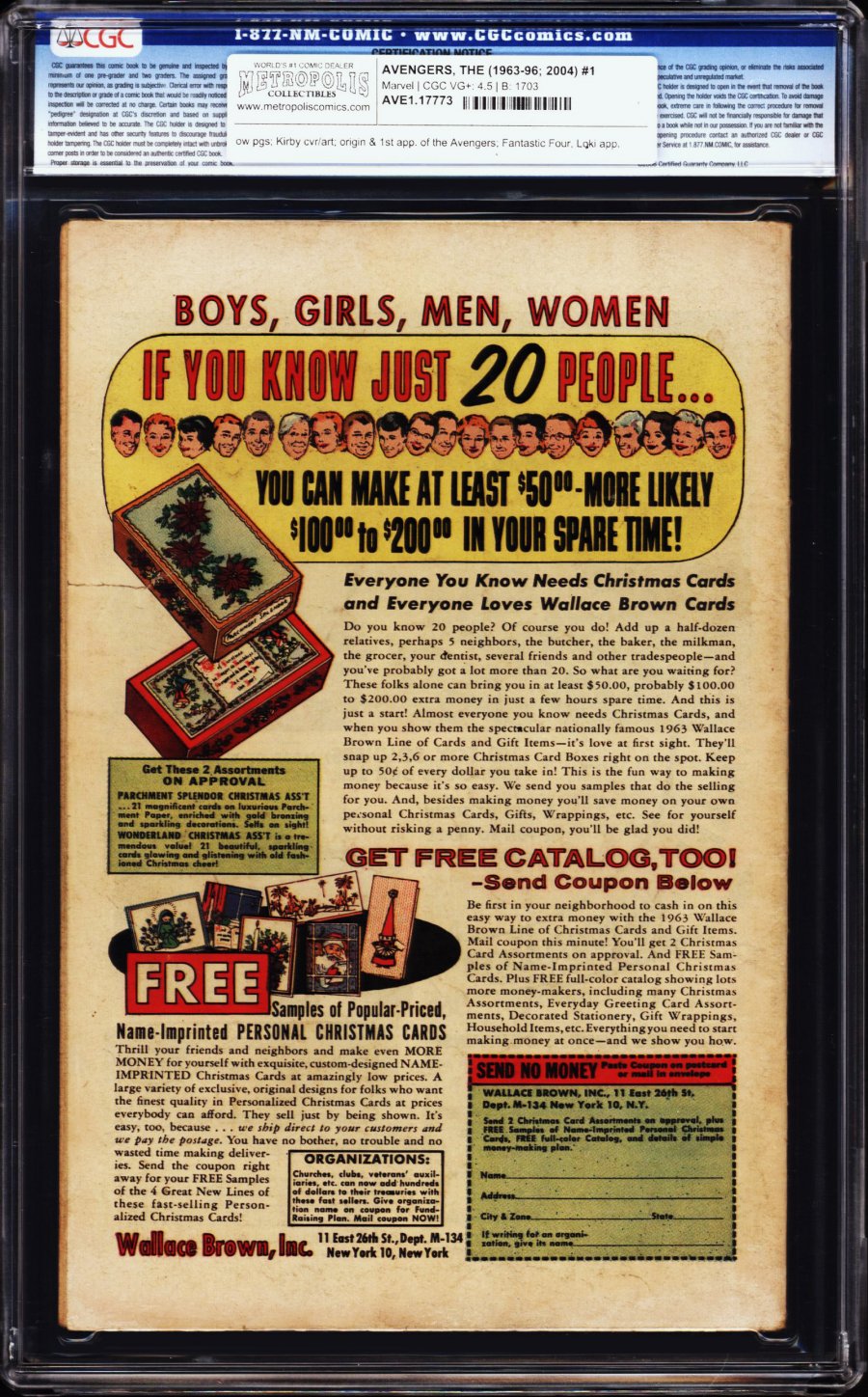 1st appearance of the Avengers w/ origin; Loki app.; Jack Kirby cover/art; COMIC BOOK IMPACT rating of 9 (CBI)