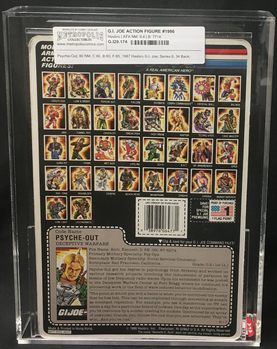 Psyche-Out; 80 NM; C:80; B:80; F:85; 1987 Hasbro G.I. Joe; Series 6; 34 Back;