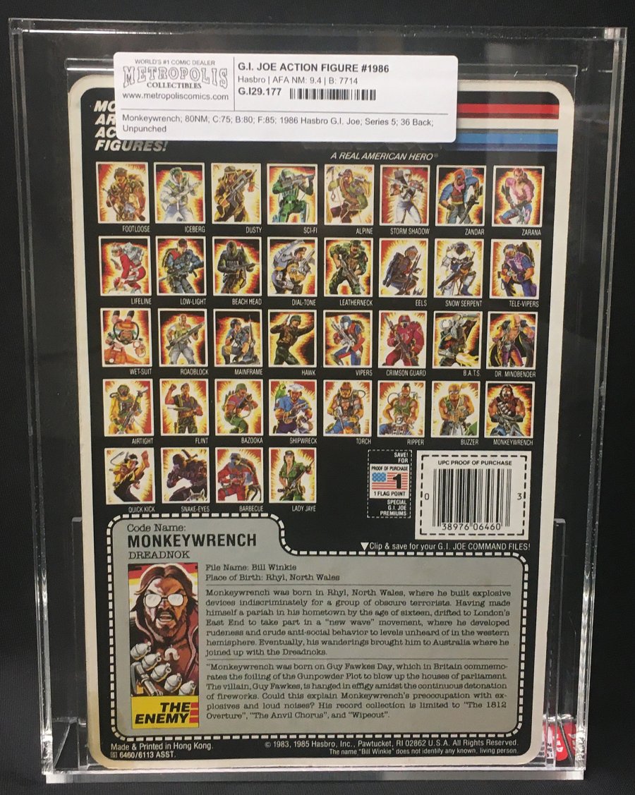 Monkeywrench; 80NM; C:75; B:80; F:85; 1986 Hasbro G.I. Joe; Series 5; 36 Back; Unpunched