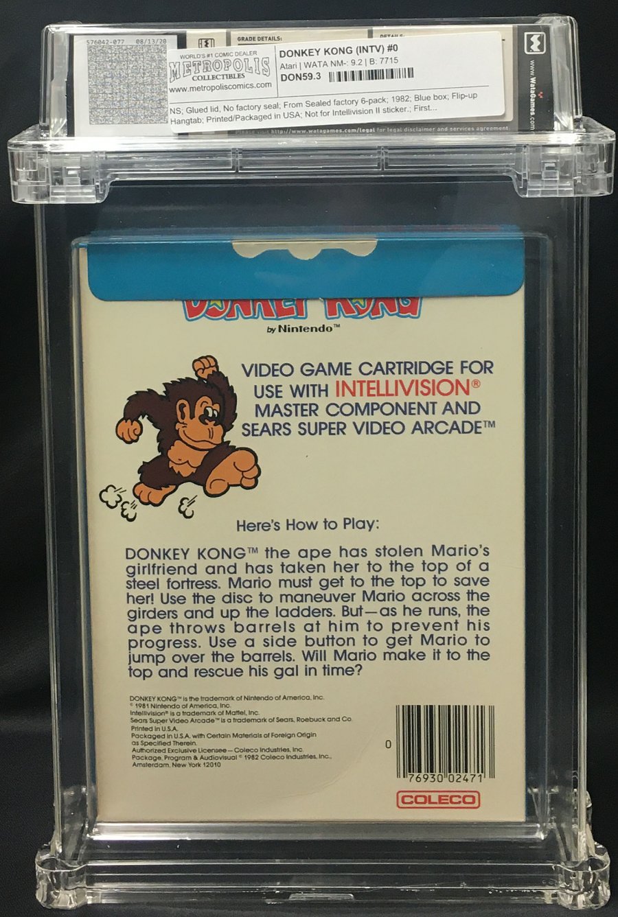 NS; Glued lid, No factory seal; From Sealed factory 6-pack; 1982; Blue box; Flip-up Hangtab; Printed/Packaged in USA; Not for Intellivision II sticker.