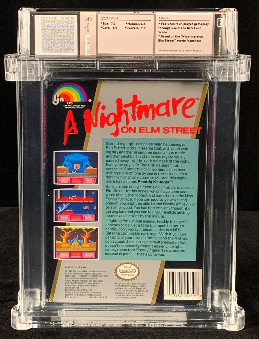 Features four-player gameplay through use of the NES Four Score; Based on the "A Nightmare on Elm Street" movie franchise.Box - Rev-A; Oval SOQ R; "Faces" Logo