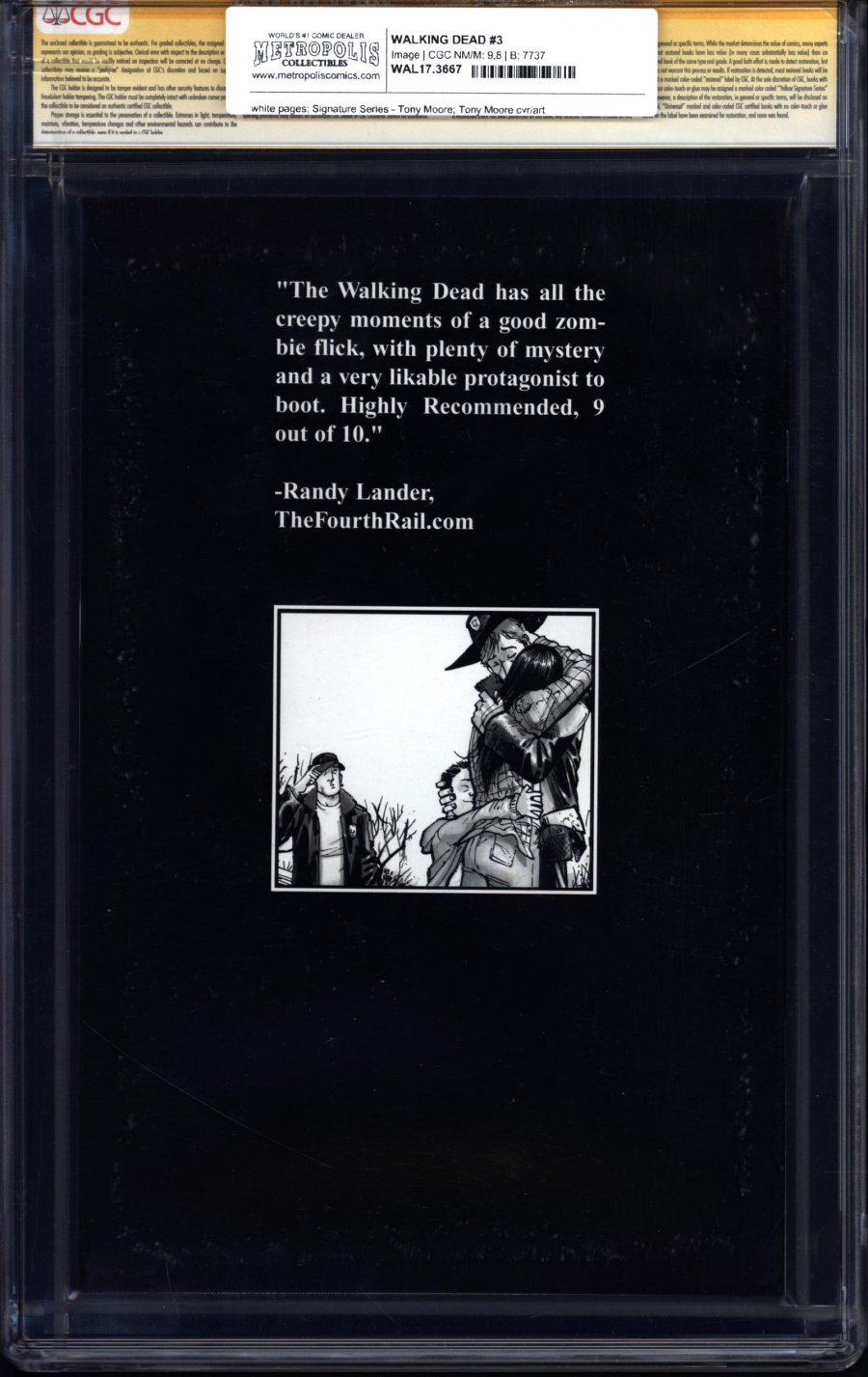 Swedish Edition (2013); reprints issues #3 & 4; Tony Moore cvr/artSPOILER ALERT: 1st app. of Allen (He dies), Donna (She does too), Billy, Ben (both goners), Jim (he's a walker), Dale (He dies), Carol (Dies), Sophia (So far so good), Amy (dead) & Andrea (OK as of last publication) (Update: She gets bitten by a walker then Rick stabs her in the head)