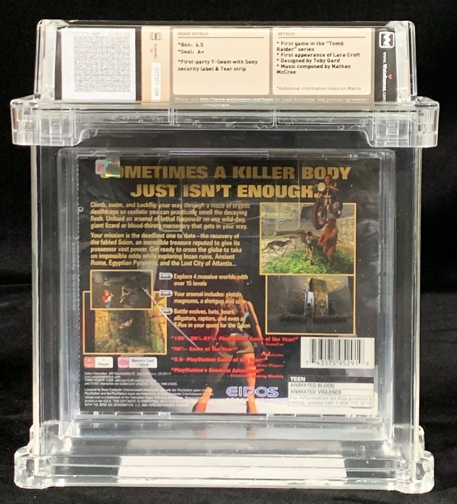 First game in the "Tomb Raider" series; First appearance of Lara Croft; Designed by Toby Gard; Music composed by Nathan McCreeSOMETIMES A KILLER BODY JUST ISN'T ENOUGH. Climb, swim, and backflip your way through a maze of cryptic deathtraps so realistic you can practically smell the decaying flesh. Unload an arsenal of lethal firepower on any wild-dog , giant lizard or blood-thirsty mercenary that gets in your way. Your mission is the deadliest one to date - the recovery of the fabled Scion, an incredible treasure reputed to give its possessor vast power. Get ready to cross the globe to take on impossible odds while exploring Incan ruins, Ancient Rome, Egyptian Pyramids, and the Lost City of Atlantis...
