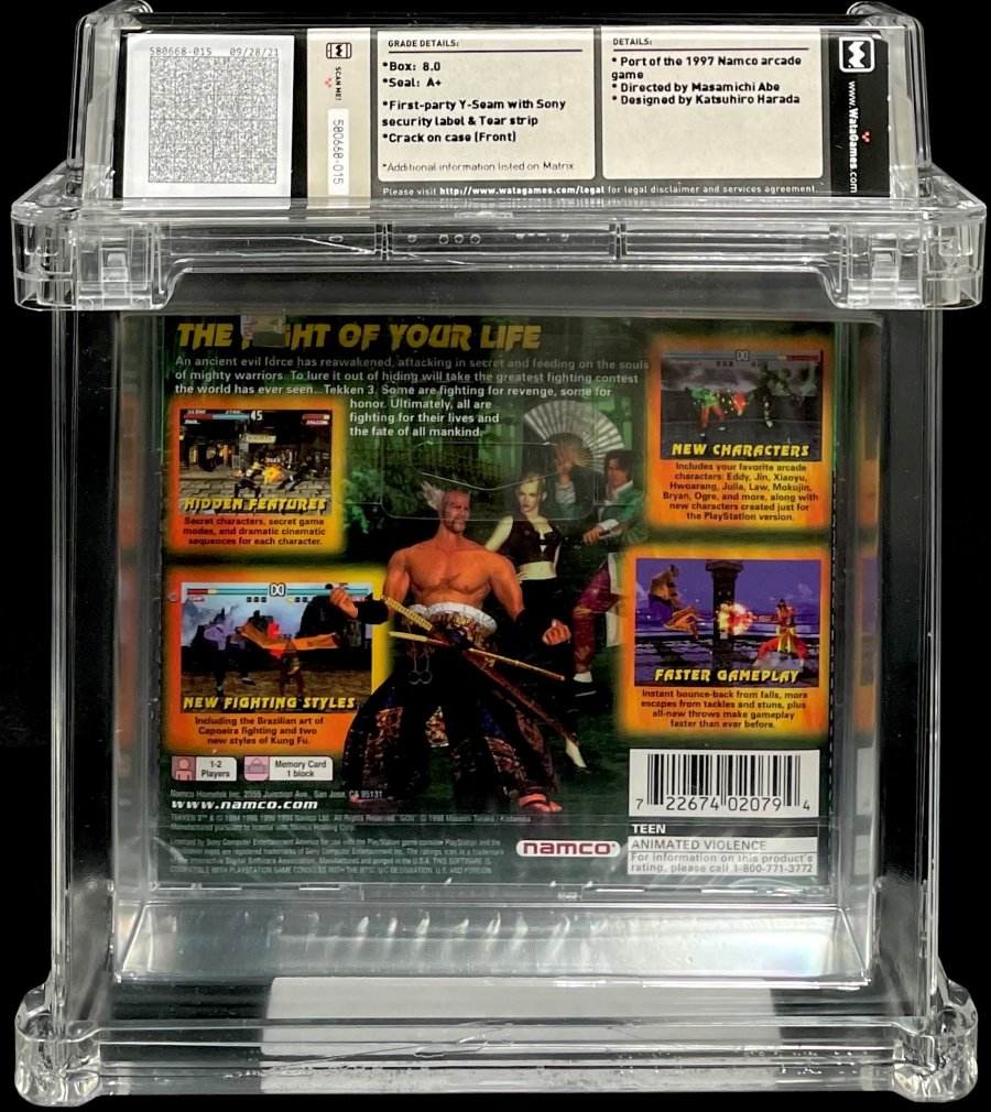 Port of the 1997 Namco arcade game; Directed by Masamichi Abe; Designed by Katsuhiro HaradaThe fight of your life! An ancient evil force has reawakened, attacking in secret and feeding on the souls of mighty warriors. To lure it out of hiding will take the greatest fighting contest the world has ever seen...Tekken 3. Some are fighting for revenge, some are fighting for honor. Ultimately, all are fighting for their lives and the fate of all mankind.
