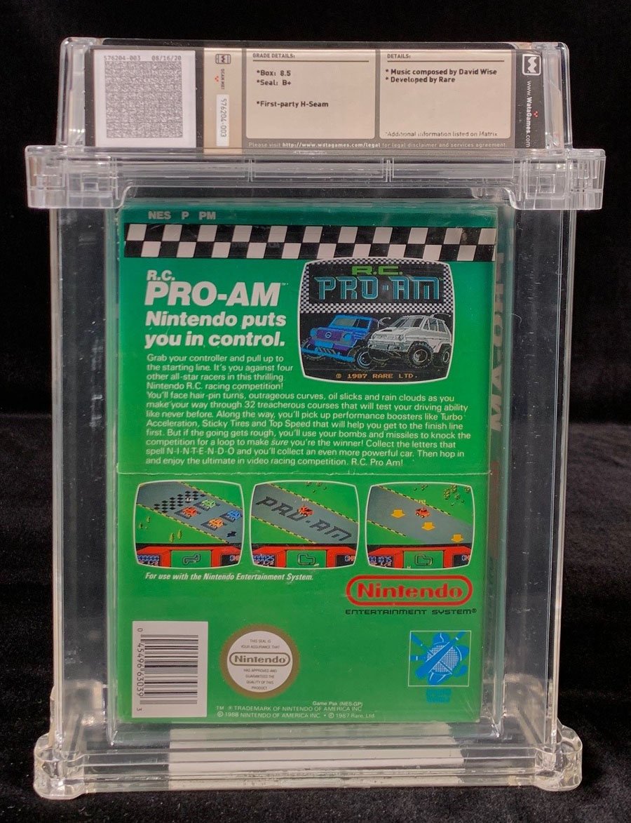 Music composed by David Wise; Developed by RareR.C. Pro-Am Nintendo puts you in control. Grab your controller and pull up to the starting line. It's you against four other all-star racers in this thrilling Nintendo R.C. racing competition! You'll face hair-pin turns, outrageous curves, oil slicks and rain clouds as you make your way through 32 treacherous courses that will test your driving ability like never before. Along the way, you'll pick up performance boosters like Turbo Acceleration, Sticky Tires and Top Speed that will help you get to the finish live first. But if the going gets rough, you'll use your bombs and missiles to knock the competition for a loop to make sure you're the winner! Collect the letters that spell N-I-N-T-E-N-D-O and you'll collect an even more powerful car. Then hop in and enjoy the ultimate in video racing competition, R.C. Pro AM!