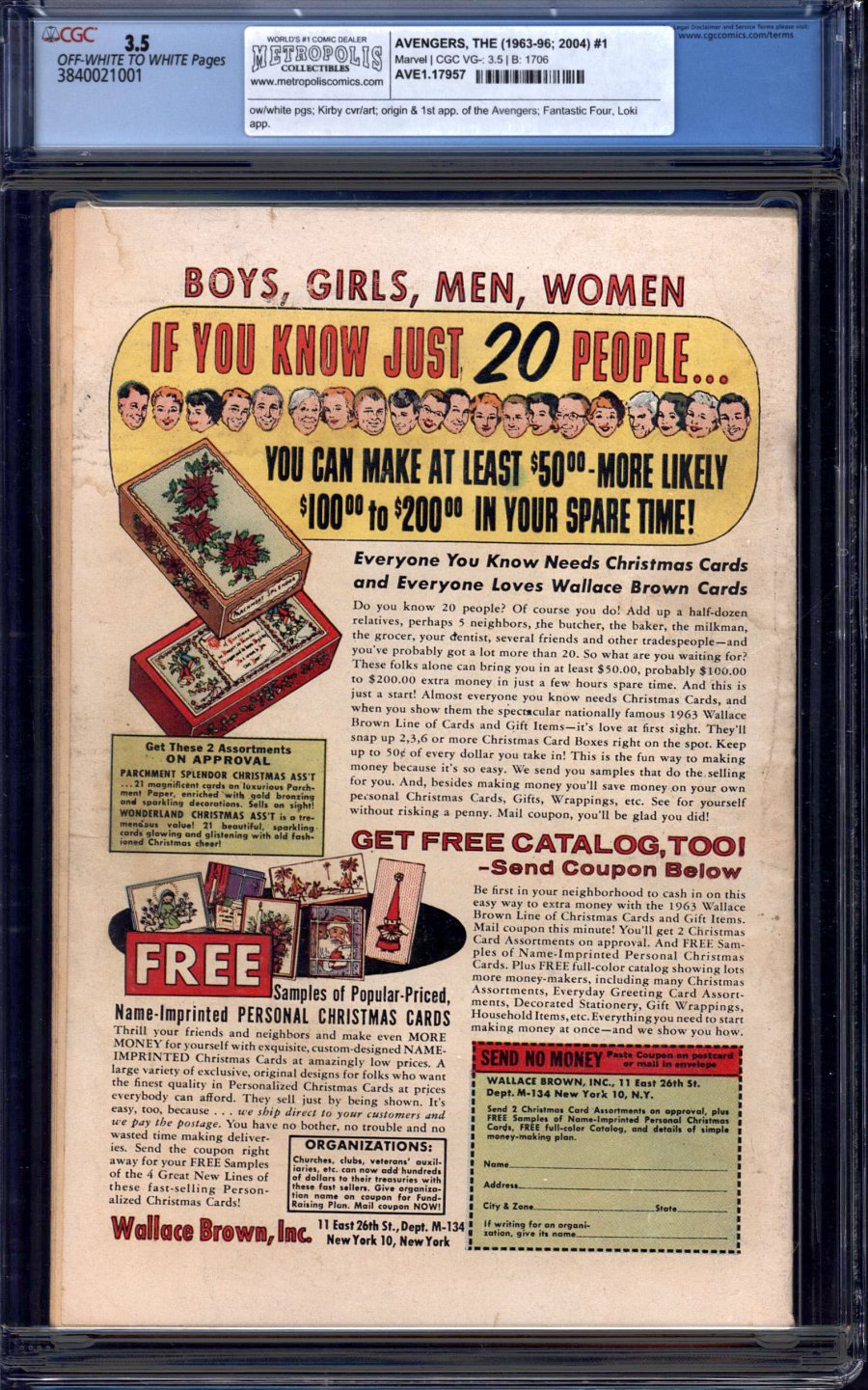 1st appearance of the Avengers w/ origin; Loki app.; Jack Kirby cover/art; COMIC BOOK IMPACT rating of 9 (CBI)