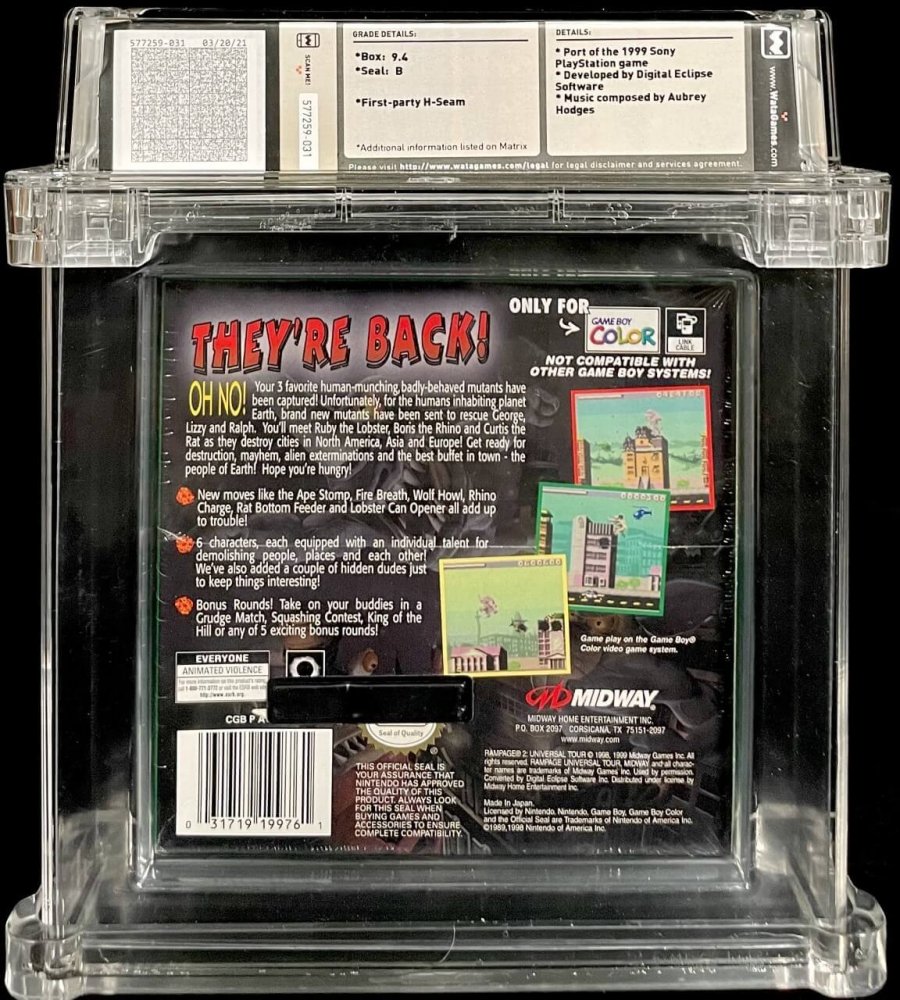 Port of the 1999 Sony PlayStation Game; Developed by Digital Eclipse Software; Music Composed by Aubrey Hodges.THEY'RE BACK! OH NO! Your 3 favorite human-munching, badly-behaved mutants have been captures! Unfortunately, for the humans inhabiting planet Earth, brand new mutants have been sent to rescue George, Lizzy, and Ralph. You'll meet Ruby the Lobster, Boris the Rhino, and Curtis the Rat as they destroy cities in North America, Asia, and Europe! Get ready for destruction, mayhem, alien exterminations, and the best buffet in town - the people of Earth! Hope you're hungry!