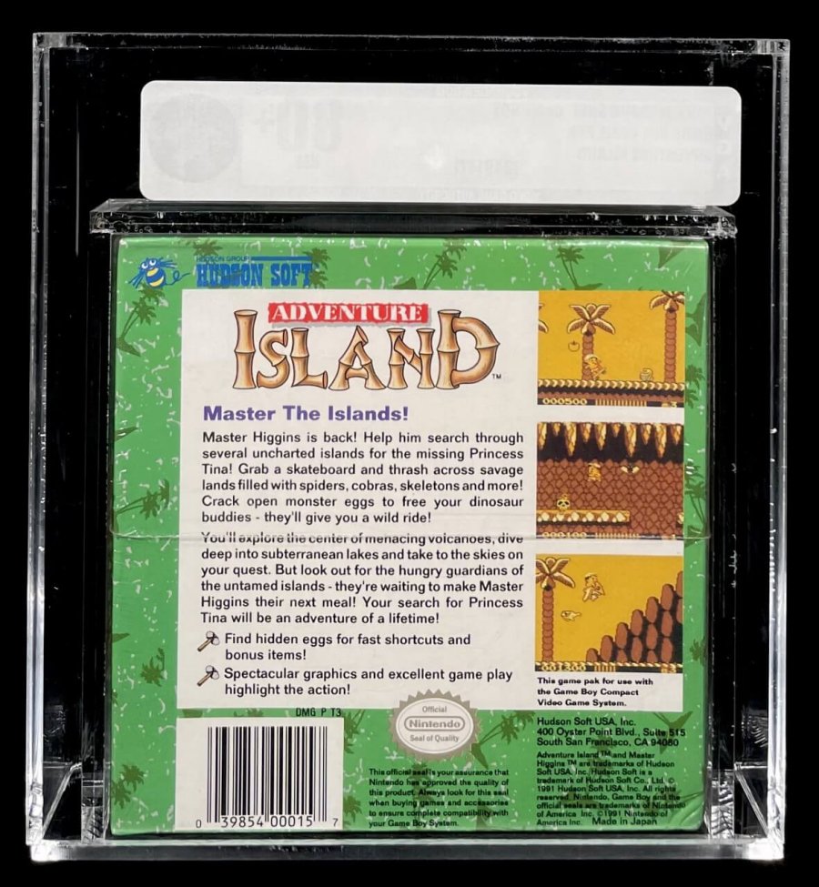 1st Print; 80+; NM; #73491471Master Higgins is back! Help him search through several uncharted islands for the missing Princess Tina! Grab a skateboard and thrash across savage lands filled with spiders, cobras, skeletons and more! Crack open monster eggs to free your dinosaur buddies - they'll give you a wild ride! You'll explore the center of menacing volcanoes, dive deep into subterranean lakes and take to the skies on your quest. But look out for the hungry guardians of the untamed islands - they're waiting to make Master Higgins their next meal! Your search for Princess Tina will be an adventure of a lifetime!