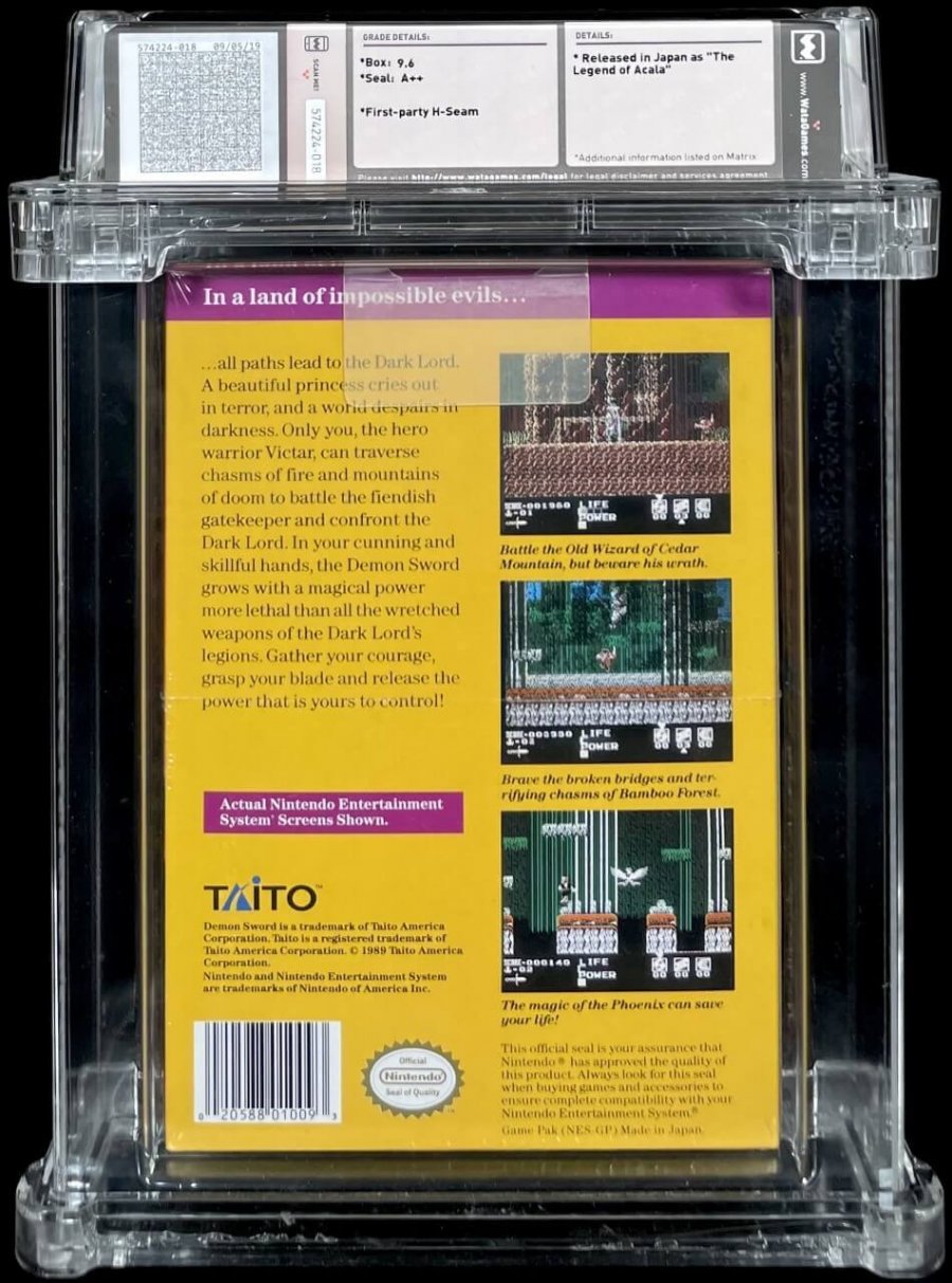 Artist: Rick Farrell; Released in Japan as "The Legend of Acala".In the land of impossible evils.....all paths lead to the Dark Lord. A beautiful princess cries out in terror, and a world despairs in darkness. Only you, the hero warrior Victar, can traverse chasms of fire and mountains of doom to battle the fiendish gatekeeper and confront the Dark Lord. In your cunning and skillful hands, the Demon Sword grows with a magical power more lethal than all the wretched weapons of the Dark Lord's legions. Gather your courage , grasp your blade and release the power that is yours to control!