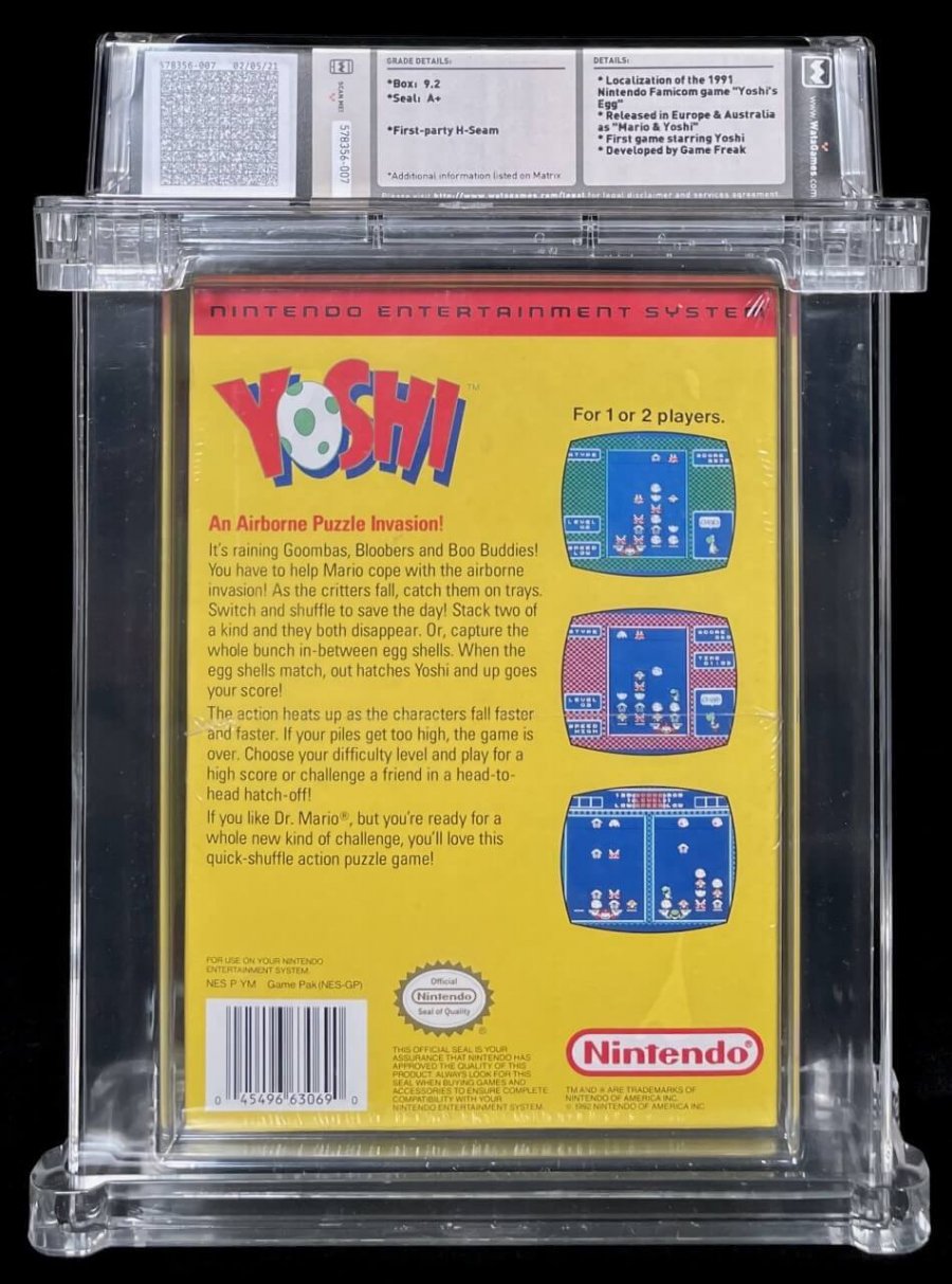 Released in Japan as "Yoshi's Egg" & in Europe as "Mario & Yoshi"; First game starring Yoshi; Developed by Game FreakAn Airborne Puzzle Invasion! It's raining Goombas, Bloobers and Boo Buddies! You have to help Mario cope with the airborne invasion! As the critters fall, catch them on trays. Switch and shuffle to save to day! Stack two of a kind and they both disappear. Or, capture the whole bunch in-between egg shells. When the egg shells match, out hatches Yoshi and up goes your score! The action heats up as the characters fall faster and faster. If your piles get too high, the game is over. Choose your difficulty level and play for a high score or challenge a friend in a head-to-head hatch off!. If you like Dr. Mario, but you're ready for a whole new kind of challenge, you'll love this quick-shuffle action puzzle game!