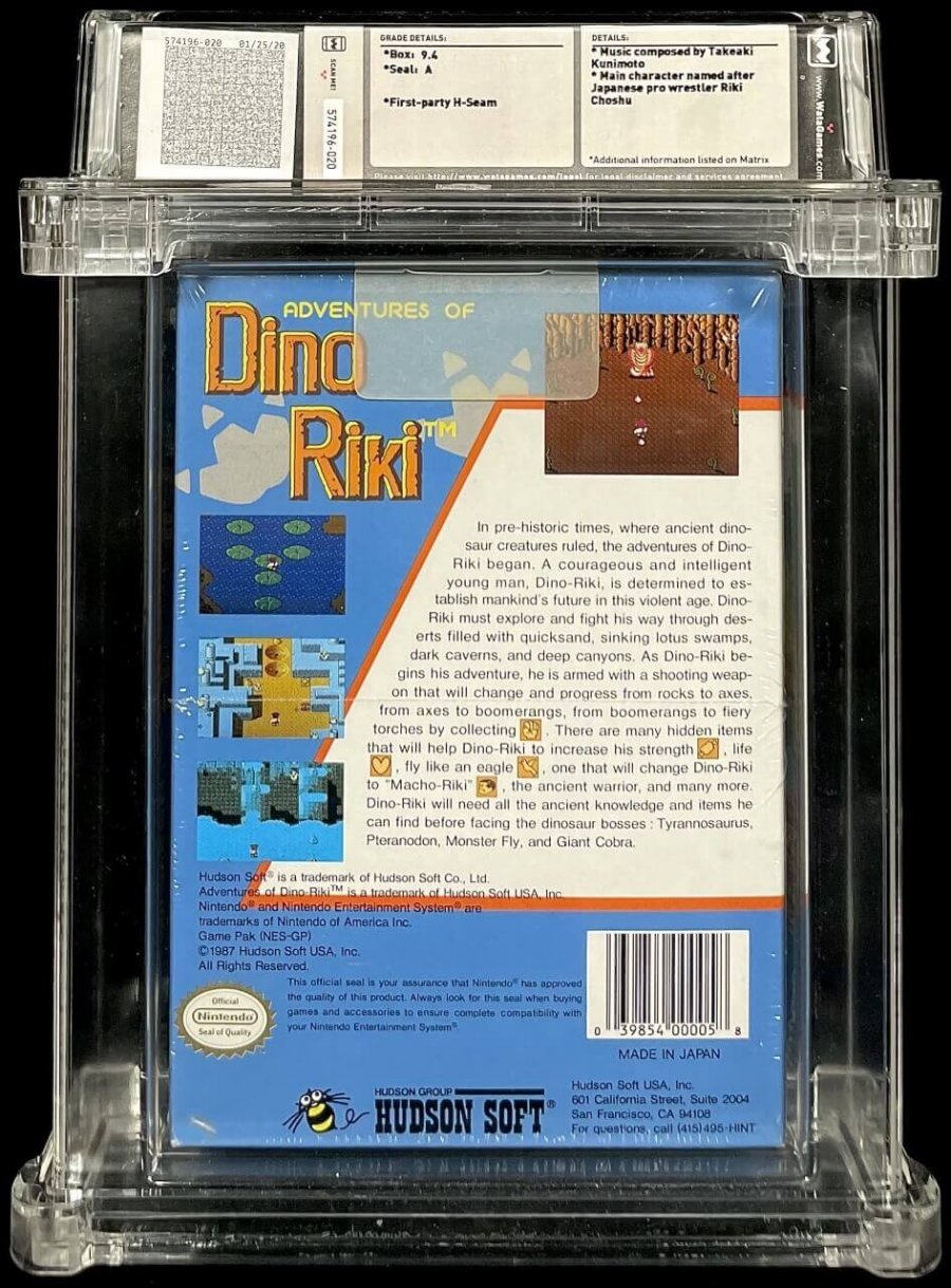 Music Composed by Takeaki Kunimoto; Main Character Named After Japanese Pro Wrestler Riki ChoshuIn pre-historic times, where ancient dinosaur creatures ruled, the adventures of Dino-Riki began. A courageous and intelligent young man, Dino-Riki, is determined to establish mankind's future in this violent age. Dino-Riki must explore and fight his way through deserts filled with quicksand, sinking lotus swamps, dark caverns, and deep canyons. As DIno-Riki begins his adventure. he is armed with a shooting weapon that will change and progress from rocks to axes, from axes to boomerangs, from boomerangs to fiery torches by collecting. There are many hidden items that will help Dino-Riki to increase his health, life, fly like an eagle, one that will change Dino-Rikl to "Macho-Riki", the ancient warrior, and many more. Dino-Riki will need all the ancient knowledge and items he can find before facing the dinosaur bosses: Tyrannosaurus, Pteranodon, Monster Fly. and Giant Cobra.